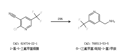 1.通过2-氯-5-三氟甲基烟腈合成(5-(三氟甲基)吡啶-3-基)甲胺,收率约29%;