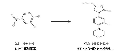2.通过3,4-二氟硝基苯合成(5R)-3-[3-氟-4-(4-吗啡啉基)苯基]-5-羟甲基-2-恶唑烷酮