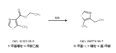 1.通过5-甲基噻唑-4-甲酸乙酯合成(5-甲基-1,3-噻唑-4-基)甲醇,收率约60%;