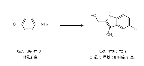 1.通过对氯苯胺合成(5-氯-3-甲基-1H-吲哚-2-基)甲醇