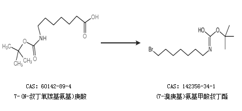 1.通过7-(N-叔丁氧羰基氨基)庚酸合成(7-溴庚基)氨基甲酸叔丁酯