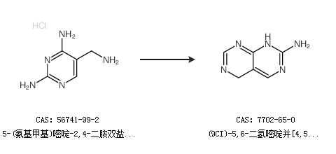 1.通过5-(氨基甲基)嘧啶-2,4-二胺双盐酸盐合成(9CI)-5,6-二氢嘧啶并[4,5-d]嘧啶-2-胺