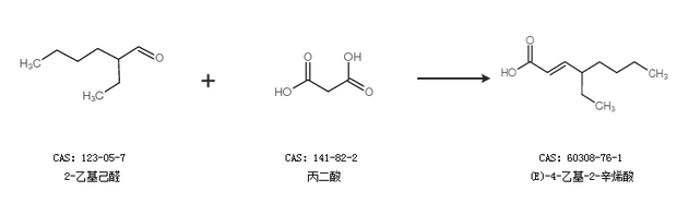 1.通过2-乙基己醛和丙二酸合成(E)-4-乙基-2-辛烯酸
