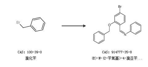 1.通过溴化苄合成(E)-N-(2-苄氧基)-4-溴亚苄基苯胺,收率约89%;