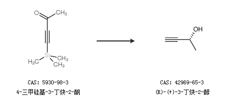 2.通过4-三甲硅基-3-丁炔-2-酮合成(R)-(+)-3-丁炔-2-醇