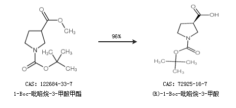 1.通过1-Boc-吡咯烷-3-甲酸甲酯合成(R)-1-Boc-吡咯烷-3-甲酸,收率约96%;