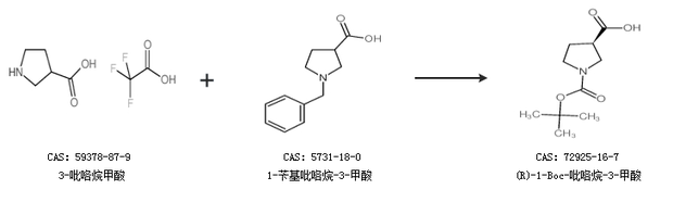 2.通过3-吡咯烷甲酸和1-苄基吡咯烷-3-甲酸合成(R)-1-Boc-吡咯烷-3-甲酸