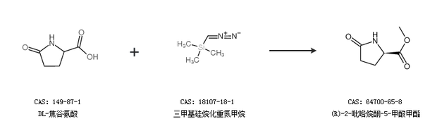 2.通过DL-焦谷氨酸和三甲基硅烷化重氮甲烷合成(R)-2-吡咯烷酮-5-甲酸甲酯
