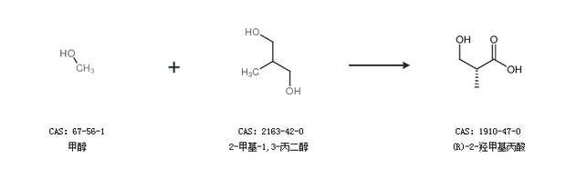 1.通过甲醇和2-甲基-1,3-丙二醇合成(R)-2-羟甲基丙酸