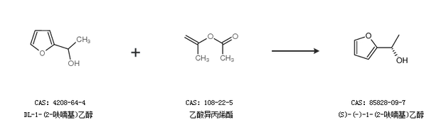 1.通过DL-1-(2-呋喃基)乙醇和乙酸异丙烯酯合成(S)-(-)-1-(2-呋喃基)乙醇