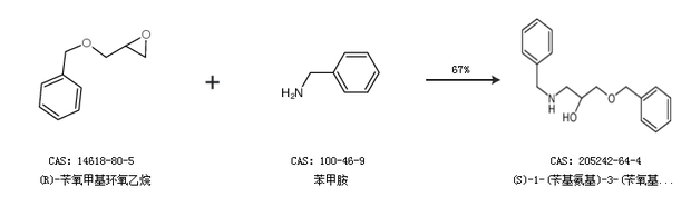 1.通过(R)-苄氧甲基环氧乙烷和苯甲胺合成(S)-1-(苄基氨基)-3-(苄氧基)-2-丙醇,收率约67%;