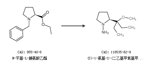 1.通过N-苄基-L-脯氨酸乙酯合成(S)-1-氨基-2-(二乙基甲氧基甲基)吡咯烷