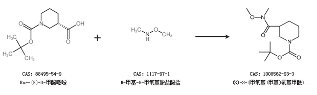 2.通过Boc-(S)-3-甲酸哌啶和N-甲基-N-甲氧基胺盐酸盐合成(S)-3-(甲氧基(甲基)氨基甲酰)哌啶-1-羧酸叔丁酯