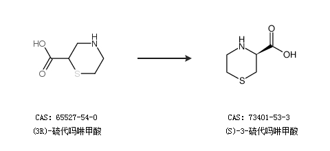1.通过(3R)-硫代吗啉甲酸合成(S)-3-硫代吗啉甲酸