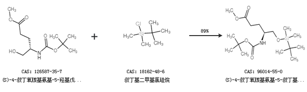 1.通过(S)-4-叔丁氧羰基氨基-5-羟基戊酸甲酯和叔丁基二甲基氯硅烷合成(S)-4-叔丁氧羰基氨基-5-叔丁基二甲基硅氧基戊酸甲酯,收率约89%;