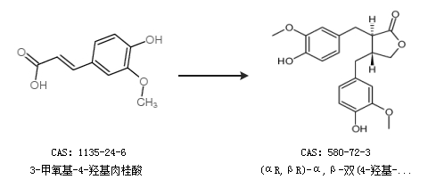 2.通过3-甲氧基-4-羟基肉桂酸合成(αR,βR)-α,β-双(4-羟基-3-甲氧苯基)丁内酯