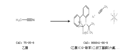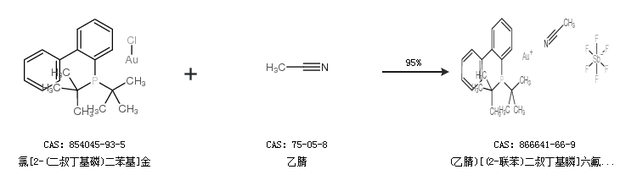 1.通过氯[2-(二叔丁基磷)二苯基]金和乙腈合成(乙腈)[(2-联苯)二叔丁基膦]六氟锑酸金(I),收率约95%;