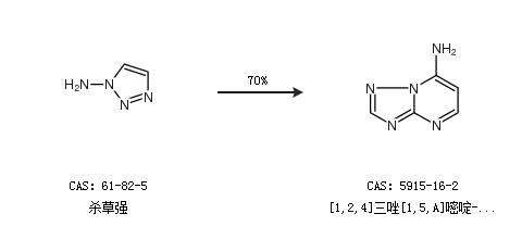 1.通过杀草强合成[1,2,4]三唑[1,5,A]嘧啶-7-氨基,收率约70%;