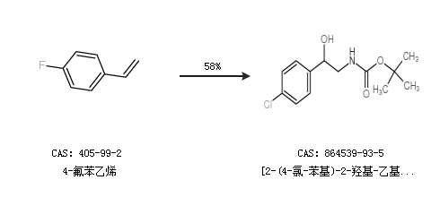 1.通过4-氟苯乙烯合成[2-(4-氯-苯基)-2-羟基-乙基]-氨基甲酸叔丁酯,收率约58%;
