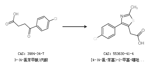 1.通过3-(4-氯苯甲酰)丙酸合成[4-(4-氯-苯基)-2-甲基-噻唑-5-基]-乙酸