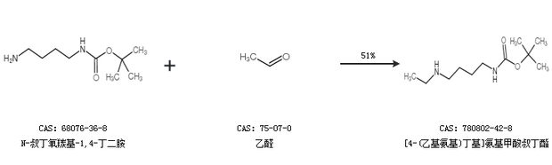 1.通过N-叔丁氧羰基-1,4-丁二胺和乙醛合成[4-(乙基氨基)丁基]氨基甲酸叔丁酯,收率约51%;