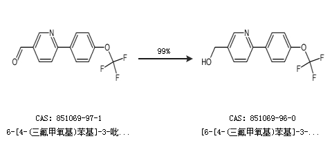 1.通过6-[4-(三氟甲氧基)苯基]-3-吡啶甲醛合成[6-[4-(三氟甲氧基)苯基]-3-吡啶基]甲醇,收率约99%;