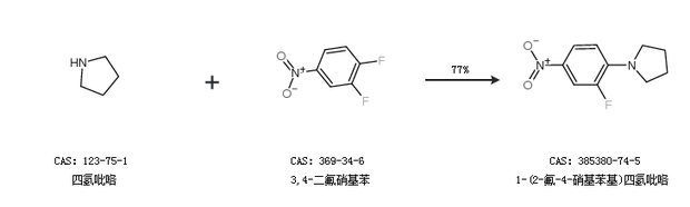 1.通过四氢吡咯和3,4-二氟硝基苯合成1-(2-氟-4-硝基苯基)四氢吡咯,收率约77%;