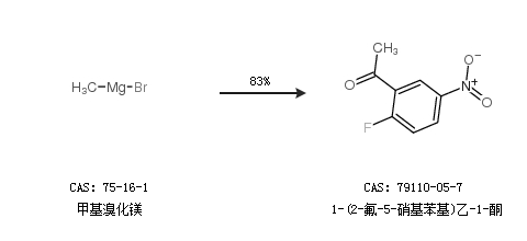 1.通过甲基溴化镁合成1-(2-氟-5-硝基苯基)乙-1-酮,收率约83%;
