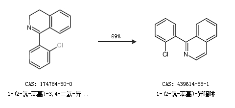 1.通过1-(2-氯-苯基)-3,4-二氢-异喹啉合成1-(2-氯-苯基)-异喹啉,收率约69%;
