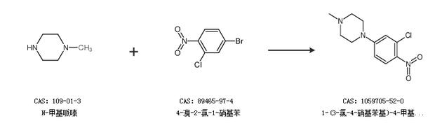 2.通过N-甲基哌嗪和4-溴-2-氯-1-硝基苯合成1-(3-氯-4-硝基苯基)-4-甲基哌嗪
