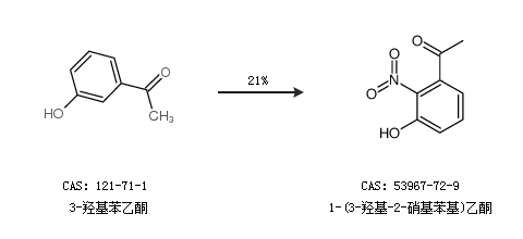 2.通过3-羟基苯乙酮合成1-(3-羟基-2-硝基苯基)乙酮,收率约21%;