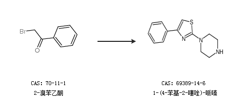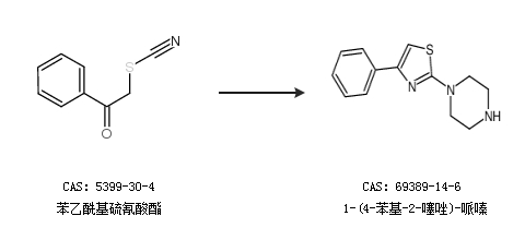 2.通过苯乙酰基硫氰酸酯合成1-(4-苯基-2-噻唑)-哌嗪