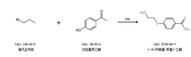2.通过溴代正丙烷和对羟基苯乙酮合成1-(4-丙氧基-苯基)-乙酮,收率约25%;