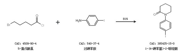 1.通过5-溴戊酰氯和对碘苯胺合成1-(4-碘苯基)-2-哌啶酮,收率约81%;