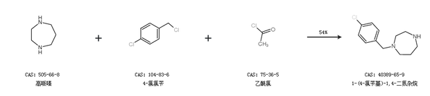 2.通过高哌嗪、4-氯氯苄和乙酰氯合成1-(4-氯苄基)-1,4-二氮杂烷,收率约54%;