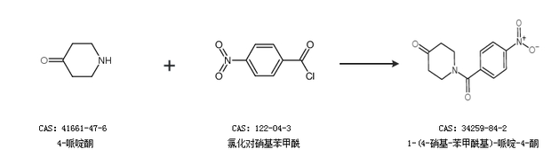 1.通过4-哌啶酮和氯化对硝基苯甲酰合成1-(4-硝基-苯甲酰基)-哌啶-4-酮