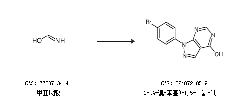 1.通过甲亚胺酸合成1-(4-溴-苯基)-1,5-二氢-吡唑并[3,4-d]嘧啶-4-酮