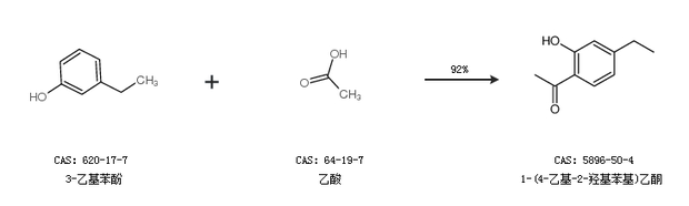 1.通过3-乙基苯酚和乙酸合成1-(4-乙基-2-羟基苯基)乙酮,收率约92%;