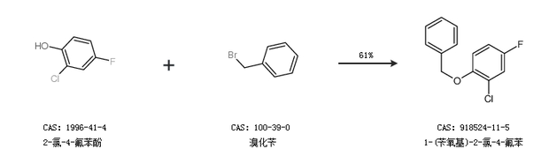 1.通过2-氯-4-氟苯酚和溴化苄合成1-(苄氧基)-2-氯-4-氟苯,收率约61%;