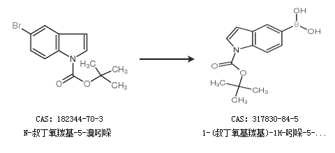 2.通过N-叔丁氧羰基-5-溴吲哚合成1-(叔丁氧基羰基)-1H-吲哚-5-硼酸
