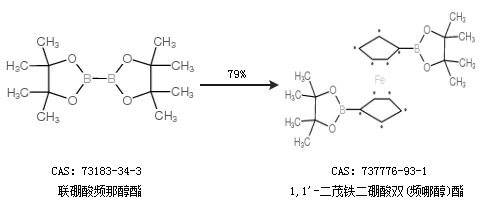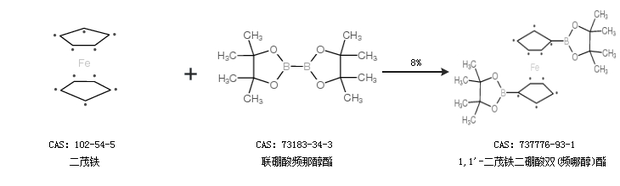 1.通过二茂铁和联硼酸频那醇酯合成1,1''-二茂铁二硼酸双(频哪醇)酯,收率约8%;