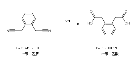 1.通过1,2-苯二乙腈合成1,2-苯二乙酸,收率约56%;