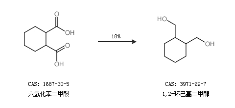 2.通过六氢化苯二甲酸合成1,2-环己基二甲醇,收率约18%;