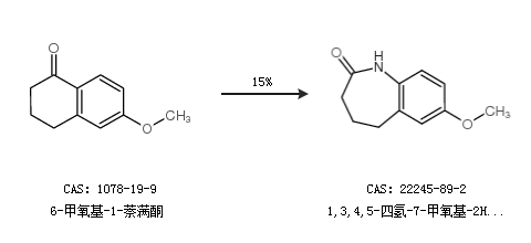 2.通过6-甲氧基-1-萘满酮合成1,3,4,5-四氢-7-甲氧基-2H-1-苯并氮杂卓-2-酮,收率约15%;