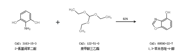 1.通过2-氨基间苯二酚和原甲酸三乙酯合成1,3-苯并恶唑-4-醇,收率约62%;