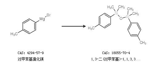 1.通过对甲苯基溴化镁合成1,3-二(对甲苯基)-1,1,3,3-四甲基二硅氧烷
