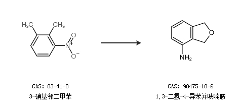 1.通过3-硝基邻二甲苯合成1,3-二氢-4-异苯并呋喃胺