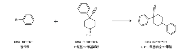 2.通过溴代苯和4-氰基-4-苯基哌嗪合成1,4-二苯基哌啶-4-甲腈