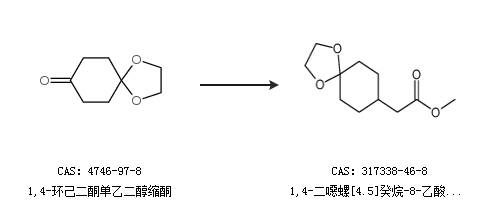 1.通过1,4-环己二酮单乙二醇缩酮合成1,4-二噁螺[4.5]癸烷-8-乙酸甲酯