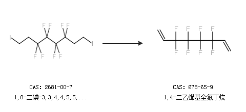2.通过1,8-二碘-3,3,4,4,5,5,6,6-辛氟辛烷合成1,4-二乙烯基全氟丁烷